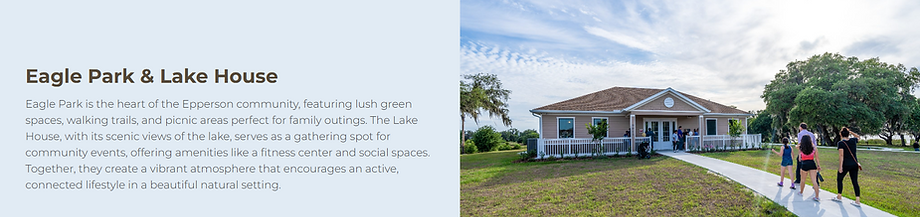 Eagle Park is the heart of the Epperson community, featuring lush green spaces, walking trails, and picnic areas perfect for family outings. The Lake House, with its scenic views of the lake, serves as a gathering spot for community events, offering amenities like a fitness center and social spaces. Together, they create a vibrant atmosphere that encourages an active, connected lifestyle in a beautiful natural setting.